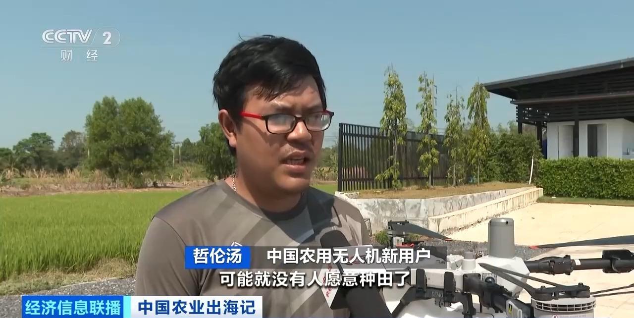 泰國巴真府大型農(nóng)田項目負責(zé)人 布里查:中國農(nóng)業(yè)無人機用下來發(fā)現(xiàn)又快又準,而且不會漏噴,幾乎是全面覆蓋、噴得很細的方式。如果是人工的話,根本沒辦法知道噴藥是不是均勻。