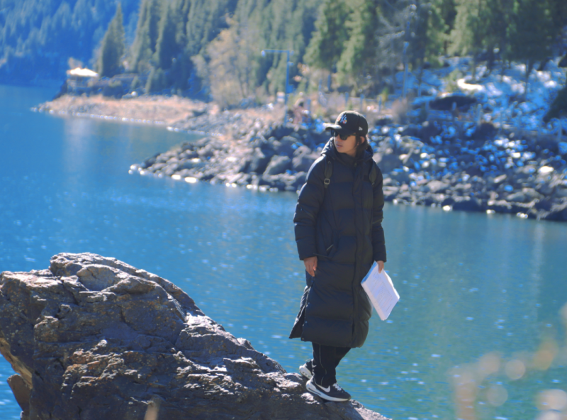 魯英俊在天山天池參與拍攝短劇(魯英俊提供)