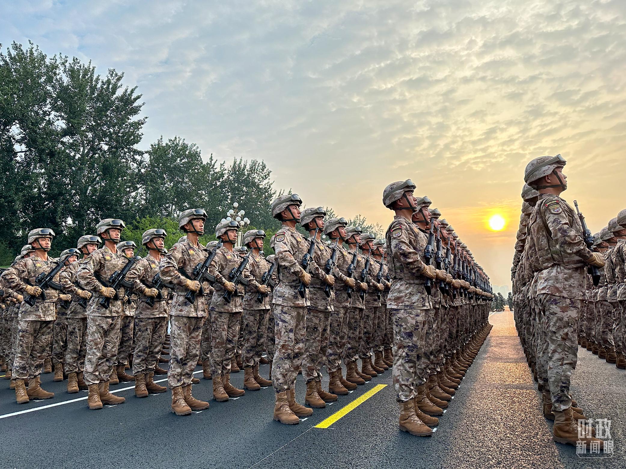 △2025年9月3日,受閱部隊(duì)方隊(duì)在長安街等候檢閱。(總臺記者石奇用拍攝)