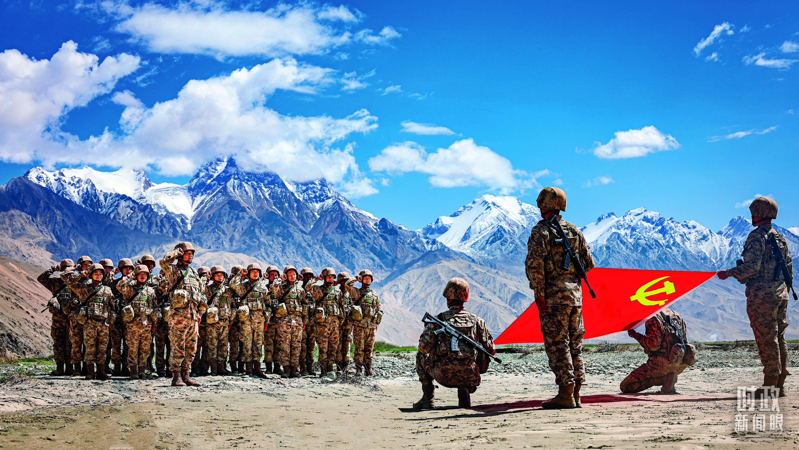 △2025年7月1日,“劉老莊連”組織黨員重溫入黨誓詞。(解放軍畫報(bào)謝沅鑫拍攝)