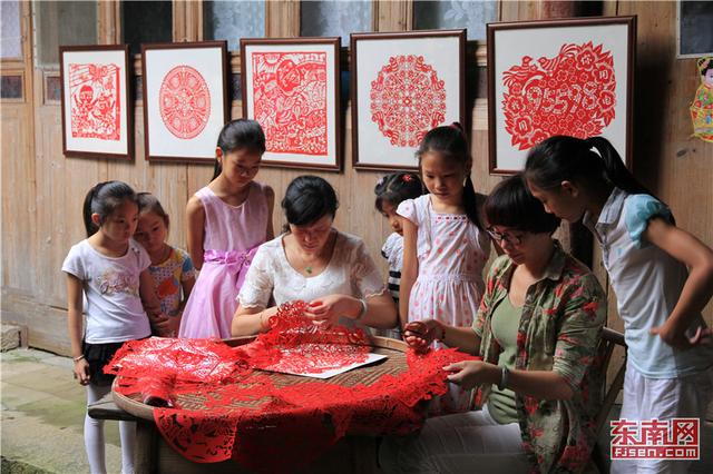 在公益剪紙培訓(xùn)班上,孩子們正圍著“剪花嫂”學(xué)習(xí)剪紙。 福建日報(bào)通訊員 徐強(qiáng) 攝 剪紙,是我國古老的傳統(tǒng)民間藝術(shù)和廣泛流傳的民俗活動。浦城地處福建最北端,與浙江、江西相鄰,四通八達(dá)的地理位置為浦城帶來頻繁的人口流動,同時(shí)也為浦城剪紙的出現(xiàn)創(chuàng)造條件。 浦城剪紙歷史最早可以追溯到西晉時(shí),當(dāng)時(shí)北方戰(zhàn)亂,一批中原士大夫南遷到土地肥沃的浦城定居,并帶來了各種先進(jìn)的造紙技術(shù),剪紙藝術(shù)也由此而生。經(jīng)過上千年的融合演變,浦城剪紙既保留中原文明印跡,又融入?yún)窃皆戳鬟z風(fēng),具有鮮明的地域文化特征。 在浦城,剪紙亦被稱為剪花,從事剪紙的婦女被稱為“剪花嫂”或“剪花婆”。浦城剪紙的特點(diǎn),一是以字組畫,畫中有字,字中有畫;二是獨(dú)幅紋樣居多,這與剪紙多用于點(diǎn)綴和裝飾喜慶之事的用品有關(guān);三是諧音寓意。四是傳統(tǒng)文化印跡明顯,民間傳說、神話故事的花樣占有一定數(shù)量;五是代代相傳,花樣以原生態(tài)流傳居多。 2007年,浦城民間剪紙被列入福建省省級非物質(zhì)文化遺產(chǎn)名錄。2008年,浦城縣被國家文化部命名為“中國民間文化藝術(shù)(剪紙)之鄉(xiāng)”, 2014年,浦城民間剪紙被列入國家級非物質(zhì)文化遺產(chǎn)名錄。浦城民間剪紙目前擁有省級傳承人2人,市級傳承人3人,縣級傳承人34人。 |