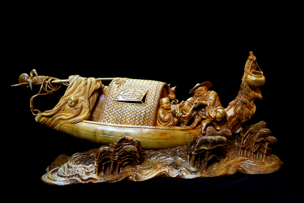 王新明作品《漁翁》 東南網(wǎng)記者章逸琳 攝 竹雕也稱竹刻,是在竹制器物上雕刻多種裝飾圖案和文字,或用竹根雕刻成各種陳設(shè)擺件。竹刻在華夏歷史上由來(lái)已久,早在《禮記·玉藻》中就提到:“士大夫飾竹為笛板,是用竹于典儀且有文飾繪其上。” 選材、鋸胚、蒸煮、脫脂、防腐防蛀、設(shè)計(jì)、描稿、打坯、修光、磨光、仿古、配座......一件真正的竹雕作品,經(jīng)過(guò)十幾道工藝才算完成,每件竹雕作品都蘊(yùn)藏著雕刻者對(duì)竹雕藝術(shù)的執(zhí)著和守望,十分講究。 |