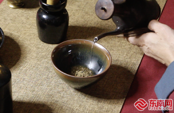 點(diǎn)茶展示。東南網(wǎng)記者 肖練冰 攝 分茶是中國(guó)古代一種獨(dú)特的飲茶方式,又稱茶百戲、水丹青,即將煮好的茶注入茶碗中的技巧。在宋代,人們把茶百戲與琴、棋、書并列,是士大夫喜愛與崇尚的一種文化活動(dòng)。 茶百戲是在點(diǎn)茶基礎(chǔ)上用清水畫畫的藝術(shù),茶湯中圖案的形成與點(diǎn)茶時(shí)茶湯的泡沫有密切關(guān)系。茶百戲可以使點(diǎn)茶形成的湯花瞬間顯示瑰麗多變的景象:如山水云霧,狀花鳥魚蟲。 茶百戲與福建武夷山淵源頗深,宋代閩北武夷山一帶,是點(diǎn)茶原料(團(tuán)餅茶)和點(diǎn)茶器具(建盞)的重要產(chǎn)地,因此茶百戲十分盛行。但是在歷史上相當(dāng)長(zhǎng)的一段歲月里,由于點(diǎn)茶法不再盛行,茶百戲逐漸衰落,清代后失傳。點(diǎn)茶是茶百戲的關(guān)鍵環(huán)節(jié),為了找回茶百戲這項(xiàng)古老的技藝,福建省武夷山市章志峰歷經(jīng)20余年不懈實(shí)踐,悟出了失傳已久的中國(guó)古代點(diǎn)茶法,完整復(fù)原了茶百戲。茶百戲也在2017年正式列入福建省第五批省級(jí)非物質(zhì)文化遺產(chǎn)代表性項(xiàng)目名錄。 |