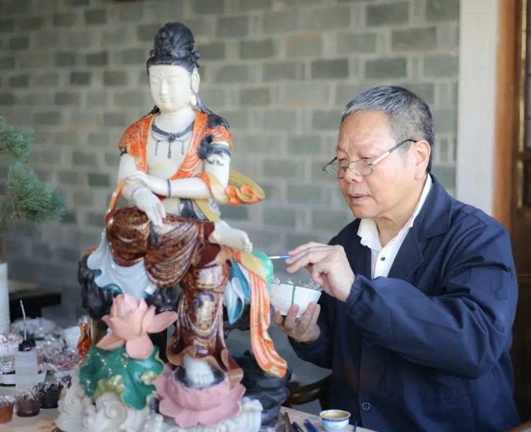 袁師永為作品上彩漆 雕漆古稱(chēng)漆雕、剔紅、剔犀,專(zhuān)屬于福州的雕漆工藝,福犀則是雕漆的一種特殊的漆器制作工藝。在福州,除了聞名遐邇的脫胎漆器外,以福州剔犀雕漆技藝制作的“福犀”,也曾廣富盛名。然而在社會(huì)發(fā)展變遷中,福州剔犀雕漆技藝曾一度面臨失傳困境。二十世紀(jì)九十年代,為了讓“福犀”重現(xiàn)往日輝煌,袁師永決意復(fù)原福犀技藝。然而創(chuàng)作初期困難重重,袁師永告訴記者,“大漆多了,礦物質(zhì)少了,就會(huì)粘刀,導(dǎo)致刀拉不動(dòng);大漆少了,礦物質(zhì)多了,漆層就很脆,容易斷裂。”為此,袁師永花了一年多的時(shí)間反復(fù)試驗(yàn),最終確定了最合適的配比。 闖過(guò)原料的配比關(guān),接下來(lái)是更重要的耐心關(guān)——要剔出漆的質(zhì)感,呈現(xiàn)作品的立體感、縱深感。那么漆就要髹到一定的厚度,多達(dá)幾十層幾百層。但髹漆并不能一氣髹完,還要考慮漆層厚度對(duì)干濕膨脹情況的影響等。 經(jīng)過(guò)袁師永的不懈努力,福犀最終得以成功復(fù)原。他還另辟蹊徑,以人物刻畫(huà)為主,融合福州木雕與壽山石雕的技藝特色,弱化傳統(tǒng)福犀的實(shí)用性,展現(xiàn)經(jīng)典傳奇的佛教法會(huì)場(chǎng)景,從而形成了現(xiàn)代福犀的唯一性。 深浸漆藝之海多年的袁師永,依然孜孜以求,探索大漆的藝術(shù)奧秘,守望福州漆藝的文脈。袁師永說(shuō),目前他最大的目標(biāo)就是推進(jìn)福犀技藝的傳承保護(hù),并通過(guò)設(shè)立工作室、帶徒辦班、辦展等舉措,把包括福犀技藝在內(nèi)的福州漆藝推向全國(guó)乃至世界。 (本文圖片均由受訪(fǎng)者供圖) |