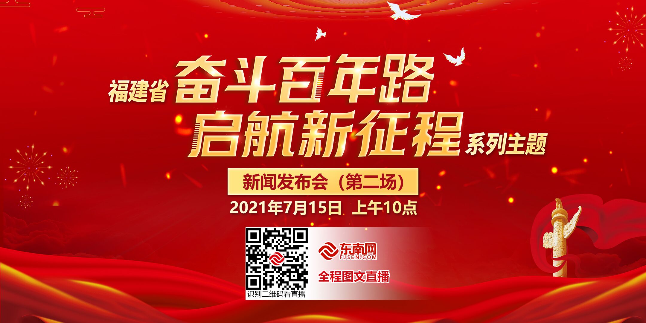 東南網(wǎng)7月14日訊 福建省政府新聞辦公室將于7月15日上午10:00,在省廣播影視中心C區(qū)400演播廳(福州市臺江區(qū)西環(huán)南路128號),召開福建省“奮斗百年路·啟航新征程”主題新聞發(fā)布會(第二場)。敬請關(guān)注。