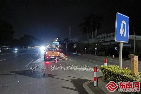 東南網(wǎng)10月17日訊(通訊員 戴匯洋 文/圖)10月16日晚7點(diǎn)左右,漳州市公路應(yīng)急保障分中心接到相關(guān)部門電話稱:“臺商投資區(qū)國道324線上房村附近路段出現(xiàn)碎石滴灑漏,影響了過往車輛的通行安全,請及時派人來清理?!毙∷槭癁⒙渎访娌粌H易引起車輛打滑,還容易導(dǎo)致石子飛濺,特別是夜間行車,視線較差,稍不注意就容易引起安全事故。 收到通知后,應(yīng)急保障分中心上房公路站養(yǎng)護(hù)人員當(dāng)即帶上清掃工具趕往現(xiàn)場,養(yǎng)護(hù)人員先是按照規(guī)范對現(xiàn)場進(jìn)行安全布控,保障作業(yè)安全,防止二次事故的發(fā)生,隨后采用鐵鍬集中大塊碎石、掃帚清理小碎石及灰塵的,最后再一起裝至養(yǎng)護(hù)車的方式進(jìn)行清理,經(jīng)過半個小時左右的清掃,道路重新變得安全、通暢。 |