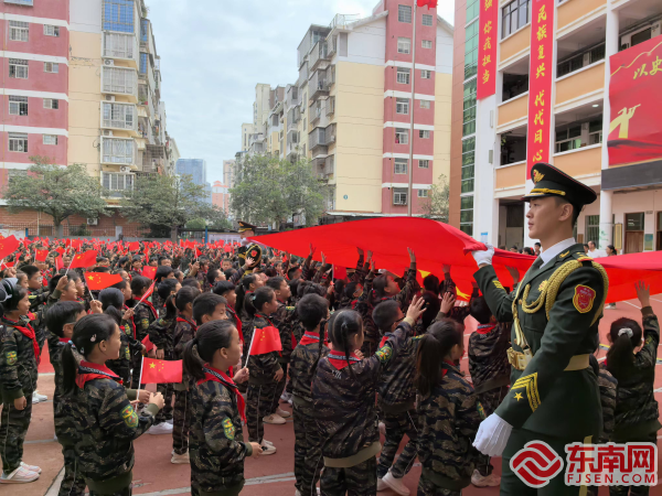 升旗儀式現(xiàn)場(chǎng) 東南網(wǎng)10月28日訊(通訊員 林煜 文/圖)近日,由中共莆田市城廂區(qū)委宣傳部主辦,城廂區(qū)退役軍人事務(wù)局等單位協(xié)辦的全民國(guó)防教育在城廂區(qū)第二實(shí)驗(yàn)小學(xué)舉行,原天安門(mén)國(guó)旗護(hù)衛(wèi)隊(duì)?wèi)?zhàn)士為全校師生帶來(lái)一場(chǎng)莊嚴(yán)的升國(guó)旗儀式。 當(dāng)天上午9:30,儀式正式開(kāi)始。全體人員神情莊重、整齊肅立。伴隨著雄壯激昂的國(guó)歌奏響,升旗手揮臂展開(kāi)國(guó)旗,鮮艷的五星紅旗迎風(fēng)飄揚(yáng),冉冉升起,全體少先隊(duì)員用最莊重的隊(duì)禮向國(guó)旗致敬,表達(dá)對(duì)偉大祖國(guó)的崇敬與熱愛(ài)之情。 “不用到天安門(mén),就可以看到天安門(mén)國(guó)旗護(hù)衛(wèi)隊(duì)的官兵們升旗,見(jiàn)識(shí)到國(guó)旗護(hù)衛(wèi)隊(duì)的風(fēng)采,感覺(jué)非常震撼?!背菐麉^(qū)第二實(shí)驗(yàn)小學(xué)學(xué)生林佰菡說(shuō)。學(xué)生蔡俊熙也激動(dòng)地表示,每當(dāng)看到五星紅旗,就想起無(wú)數(shù)革命先烈用鮮血換來(lái)今天新中國(guó)的幸福生活,作為新時(shí)代的學(xué)生,要好好學(xué)習(xí),將來(lái)報(bào)效祖國(guó)。 活動(dòng)還設(shè)置了特別的環(huán)節(jié)——觸摸國(guó)旗。原天安門(mén)國(guó)旗護(hù)衛(wèi)隊(duì)隊(duì)員們擎著巨幅國(guó)旗環(huán)繞操場(chǎng),讓這面曾在天安門(mén)廣場(chǎng)飄揚(yáng)過(guò)的國(guó)旗,在全體師生頭頂拂過(guò)。孩子們高舉雙手,輕觸國(guó)旗,感受?chē)?guó)旗的神圣與溫暖,這面珍貴的國(guó)旗也被贈(zèng)予了城廂區(qū)第二實(shí)驗(yàn)小學(xué)永遠(yuǎn)留存。 原天安門(mén)國(guó)旗護(hù)衛(wèi)隊(duì)海軍護(hù)旗手曾嶸表示,通過(guò)此次活動(dòng),讓孩子們近距離地感受到中國(guó)軍人的風(fēng)采,切實(shí)激發(fā)孩子們的愛(ài)國(guó)之情,強(qiáng)國(guó)之心,報(bào)國(guó)之志。當(dāng)天,曾嶸還為學(xué)生們進(jìn)行全民國(guó)防教育宣講,講述天安門(mén)國(guó)旗護(hù)衛(wèi)隊(duì)與國(guó)旗的故事,進(jìn)一步激發(fā)師生愛(ài)黨愛(ài)國(guó)情懷。 下一步,城廂區(qū)將全面深化國(guó)防教育,發(fā)揮老兵宣講團(tuán)力量,讓擁有愛(ài)國(guó)情懷的老兵走進(jìn)更多社區(qū)、學(xué)校、企業(yè),增強(qiáng)公民特別是青少年的國(guó)防觀念,發(fā)動(dòng)社會(huì)團(tuán)體、擁軍組織及志愿者,共同參與到國(guó)防教育活動(dòng)中,形成全社會(huì)關(guān)心國(guó)防、支持國(guó)防的良好氛圍。 |