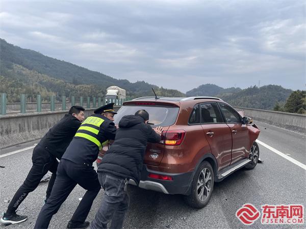 東南網(wǎng)1月26日訊(通訊員 潘孝燁 文/圖)1月22日14時(shí)35分,三明高速執(zhí)法支隊(duì)三大隊(duì)執(zhí)法員巡查至泉南高速公路大田往西洋方向155公里上京大橋時(shí),發(fā)現(xiàn)四輛小車連環(huán)追尾事故,占用高速公路主車道和應(yīng)急車道,時(shí)值春運(yùn)高峰期,事故造成交通擁堵。 清理車道,保障通行 執(zhí)法員快速行動(dòng),立即實(shí)施現(xiàn)場安全布控并引導(dǎo)后方來車緩慢通行,通知高速交警、道路勤務(wù)部門前來協(xié)同處置,同時(shí)引導(dǎo)現(xiàn)場人員行走至橋頭護(hù)欄外安全地帶等候救援。為了盡快緩解通行壓力,執(zhí)法員立即組織司機(jī)合力將主車道事故車輛推挪至應(yīng)急車道,確保兩條車道可以正常通行。在詢問現(xiàn)場人員身體狀況時(shí),執(zhí)法員得知一名老人和一名孩子手上、臉上有擦傷,迅速取出隨車配備的應(yīng)急藥箱,使用碘伏、創(chuàng)可貼對(duì)乘客傷口進(jìn)行簡單包扎處理。 隨后,交警、路勤等部門陸續(xù)到達(dá)現(xiàn)場,執(zhí)法員配合路勤工作人員拖離事故車輛,在各部門密切配合下,事故快速處置完畢,道路完全恢復(fù)正常通行。 |