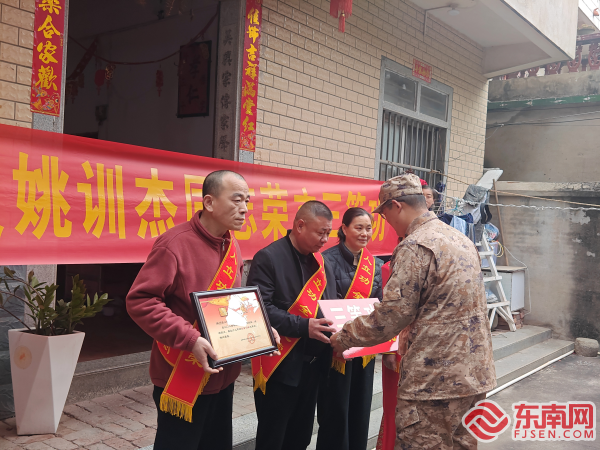 送喜報(bào) 東南網(wǎng)2月20日訊(通訊員 許彬彬 文/圖)2月18日,一支由莆田市涵江區(qū)人武部、涵江區(qū)退役軍人事務(wù)局及鄉(xiāng)鎮(zhèn)、街道相關(guān)領(lǐng)導(dǎo)一行組成的送喜報(bào)慰問(wèn)組,將8張喜報(bào)熱熱鬧鬧地送到立功軍人家中,向軍人家屬表達(dá)崇高的敬意及熱烈的祝賀,共同見(jiàn)證“一人立功、全家光榮”的榮耀時(shí)刻。 “橫幅拉起來(lái),鑼鼓敲起來(lái)?!被顒?dòng)現(xiàn)場(chǎng),喜慶的鑼鼓聲引來(lái)鄰里群眾駐足喝彩,慰問(wèn)組與立功軍人家屬親切交流,感謝軍屬一直以來(lái)默默支持子女獻(xiàn)身國(guó)防,希望他們鼓勵(lì)孩子再接再厲、積極進(jìn)取、再立新功。 一紙喜報(bào),重若千鈞,承載的是軍人枕戈待旦、守望歲月的家國(guó)情懷,體現(xiàn)的是軍人奮勇拼搏、無(wú)私奉獻(xiàn)的崇高精神。此次活動(dòng)中,涵江區(qū)還為這8位榮立三等功的立功軍人家庭送上了1.6萬(wàn)元的慰問(wèn)金,用實(shí)際行動(dòng)表達(dá)了對(duì)軍人及其家庭的關(guān)懷與尊重,營(yíng)造擁軍優(yōu)屬的良好氛圍。 溫暖不止新春,尊崇從未止步。下一步,涵江區(qū)將持續(xù)以實(shí)際行動(dòng)做深做實(shí)做細(xì)擁軍優(yōu)屬工作,營(yíng)造全民愛(ài)國(guó)擁軍的濃厚氛圍,鼓勵(lì)更多適齡青年踴躍參軍,建功軍營(yíng),續(xù)寫(xiě)新時(shí)代軍民魚(yú)水深情。 |
