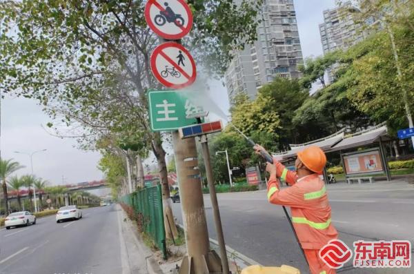 廈門(mén)集美公路部門(mén)開(kāi)展道路附屬設(shè)施清洗行動(dòng)