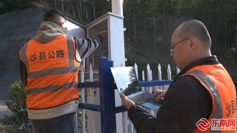 沙縣公路分中心工作人員來到省道308線公路邊坡自動化監(jiān)測點現(xiàn)場進行設(shè)備檢查。