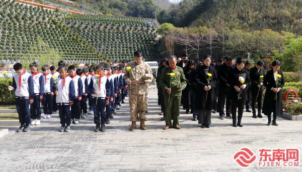 鞠躬默哀 東南網(wǎng)4月3日訊(通訊員 陳文華 文/圖)清明時(shí)節(jié)祭忠魂,英烈精神勵(lì)后人。4月2日,由莆田市荔城區(qū)新時(shí)代文明實(shí)踐中心、區(qū)委文明辦、區(qū)教育局、區(qū)退役軍人事務(wù)局、共青團(tuán)荔城區(qū)委、區(qū)人武部政工科主辦的荔城區(qū)“賡續(xù)?2025?百園千校清明祭英烈”活動(dòng)在荔城區(qū)烈士陵園舉行,深切緬懷革命先烈的豐功偉績(jī)。 位于莆田二十四景之一“壺山致雨”山麓的烈士陵園,蒼松翠柏,青山環(huán)抱,“人民英雄永垂不朽”八個(gè)大字燙金大字格外醒目。全體人員齊聚在烈士墓碑前,緬懷為民族獨(dú)立和人民解放事業(yè)英勇獻(xiàn)身的革命先烈。 上午9時(shí),祭英烈儀式正式開(kāi)始,全體人員整齊列隊(duì),莊嚴(yán)肅立,奏唱中華人民共和國(guó)國(guó)歌,向烈士鞠躬默哀,銘記歷史,追憶先烈們的不朽功勛;少先隊(duì)員獻(xiàn)唱《我們是共產(chǎn)主義接班人》。隨后,全體人員手持鮮花緩慢走到烈士墓前瞻仰革命先烈,敬獻(xiàn)鮮花,寄托哀思。 敬獻(xiàn)鮮花 活動(dòng)現(xiàn)場(chǎng),大家還抒寫(xiě)感言寄語(yǔ)卡片,面對(duì)面聆聽(tīng)參戰(zhàn)老兵講述英烈故事,勉勵(lì)廣大青少年向英雄人物學(xué)習(xí),爭(zhēng)做新時(shí)代好少年,報(bào)效祖國(guó)。 “今天來(lái)參加祭掃活動(dòng),心潮澎湃。我們要銘記先烈遺志,珍惜現(xiàn)在的和平生活,好好學(xué)習(xí),將來(lái)為祖國(guó)發(fā)展貢獻(xiàn)力量。”大坂小學(xué)學(xué)生蔡佳靈動(dòng)情地說(shuō)。 據(jù)介紹,清明節(jié)期間,荔城區(qū)將繼續(xù)組織中小學(xué)生赴烈士陵園參加“擦拭一遍墓碑、敬獻(xiàn)一束鮮花、進(jìn)行一次描金描紅、重溫入團(tuán)(入隊(duì))誓詞、寫(xiě)一張寄語(yǔ)卡片、品讀紅色經(jīng)典、講述英烈故事”等思政教育活動(dòng),緬懷英烈、致敬英烈,引導(dǎo)青少年學(xué)生扣好人生的第一粒扣子,激發(fā)青少年學(xué)生“強(qiáng)國(guó)復(fù)興有我”的使命擔(dān)當(dāng),努力成長(zhǎng)為擔(dān)當(dāng)民族復(fù)興大任的時(shí)代新人。此外,“賡續(xù)·2025·清明祭英烈”云端獻(xiàn)花寄哀思活動(dòng)同步啟動(dòng),通過(guò)向先烈鞠躬、為先烈送花、簽名寄語(yǔ)等方式,寄托哀思,表達(dá)對(duì)英烈的深切緬懷和無(wú)限敬意,銘記英烈志,傳承紅色魂。 |
