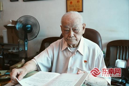 李祖景。 東南網(wǎng)記者 杜志鑫 攝 東南網(wǎng)9月2日訊(本網(wǎng)記者 傅心玫)“革命軍人個個要牢記,三大紀律八項注意;第一服從上級的命令,步調(diào)一致才能得勝利。第二不拿群眾一針線,群眾對咱擁護又喜歡……”近日,在位于泉州市豐澤區(qū)的李祖景家里,這名96歲的抗戰(zhàn)老兵用閩南語向記者唱起歌曲《三大紀律八項注意》。83年前,年僅13歲的他便是這樣唱著歌曲、念著童謠,在戰(zhàn)火紛飛的年代,以地下黨交通員的身份投身抗戰(zhàn),在家鄉(xiāng)的街巷與村落間穿梭,用鄉(xiāng)音哼唱著自編的抗日小調(diào),把“家國危難”的緊迫感、“奮起抗爭”的呼吁,漸漸唱進人們的心里,又在一次次炮火洗禮中,從稚氣少年成長為一名成熟的革命戰(zhàn)士。 被炮火改寫的人生:書香家破,骨肉離散 李祖景原名伍百泉,1929年出生于晉江安海的一個書香世家,父親伍祥甫是晚清的一名秀才,在南安石井與晉江安海設(shè)館授徒,學識與品行皆受鄉(xiāng)鄰敬重。童年的李祖景常常趴在父親懷里學《三字經(jīng)》《千字文》,一家人安居樂業(yè),生活平淡又幸福。 抗日戰(zhàn)爭的爆發(fā),徹底打碎了這份安穩(wěn)。忠誠正義又憂國憂民的伍祥甫對日寇侵略惡行痛恨不已,常常在授課時把抗日理念揉進課文中,就連過年書寫春聯(lián)時都會加上“抗日救國”的字句,家中門楣連年端端正正寫著“勝利屬我”四個字。年幼的李祖景在耳濡目染中,心里埋下了對侵略者的痛恨。 1938年5月,日軍攻陷廈門,安海和晉南沿海一夜淪為抗戰(zhàn)前線,“日軍時常出動飛機空襲騷擾,轟炸掃射,炸養(yǎng)正小學,炸斷中亭橋。凄厲的警報聲每日響起,恐怖氣氛到處籠罩。”原本熱鬧繁榮的安海變成了死港,百姓的生活越來越困苦。伍祥甫一家的生活更是一落千丈——百姓沒錢讀書,私塾收入銳減;人們世事簡辦,應(yīng)邀作文的勞酬也斷了來源。一家九口陷入“有了上頓沒下頓”的困境。為了讓孩子活下去,父母忍痛把幾個孩子送到別人家撫養(yǎng)。在饑寒交迫中,伍祥甫病倒不起,很快與世長辭。 父親離世后,生活陷入絕境,保長又上門抓壯丁。情急之下,母親陳圭娘想起“二抓一、三抓二、孤丁免當兵”的抽丁政策,為護住17歲的哥哥,咬牙將李祖景送到晉江內(nèi)坑李姓農(nóng)家,以“換五谷養(yǎng)生母”的約定定下收養(yǎng)關(guān)系。“從此家里七兄妹,散作七家七姓?!币彩悄菚r起,伍百泉改名為李祖景。 年輕時的李祖景。 受訪者供圖 少年的抗戰(zhàn)路:從唱念童謠到忠誠“紅小鬼” 心存國仇家恨,胸懷報國之志,李祖景小小年紀便學會用閩南語童謠傳遞抗日信念?!巴枳袦?,沯沯滾,大家起來打日本,小弟做先鋒,阿兄做后盾,打得日本變成番薯粉……”“燒酒矸,豆油矸,愛錢怕死當漢奸,甘心叛國名不顧,害死父母無所靠,害死兄弟走無路……”他將一首首童謠在街巷唱響,清脆的童聲吸引了許多人跟著傳唱,抗日的火種就這樣在鄉(xiāng)鄰間傳遞開來。 1942年,13歲的李祖景被養(yǎng)父李德汫送到內(nèi)坑小學讀書,在那里,他遇到了革命道路的引路人——老師朱義斌。朱義斌是一名地下共產(chǎn)黨員,他對讀書刻苦又懷有報國志向的李祖景十分欣賞,常常在放學后單獨為李祖景授課,向他講述延安等地的革命故事,講共產(chǎn)黨人的理想。紅色的種子,就這樣在李祖景心里發(fā)了芽。同年9月,李祖景在朱義斌的影響下參加地下工作,成為中共泉州中心縣委的一名交通員。 盡管年齡小,李祖景卻深刻明白身上的責任之重,“朱義斌老師說,很多孩子在戰(zhàn)爭里幫著傳情報、報敵情,這些小交通員對戰(zhàn)役勝利起著很大作用?!彼浿@話,除了傳遞情報、對接戰(zhàn)友,他還利用課后時間向同學講抗戰(zhàn)故事、傳革命理想,結(jié)識了一群志同道合的伙伴。雖然不是扛槍作戰(zhàn)的士兵,他的革命生涯里依舊充滿驚險。一次,他走到養(yǎng)正小學門口,兩架敵機突然前來轟炸學校,他只能匆忙藏到圍墻下,炸彈炸到學校操場,塵土飛揚,圍墻上的磚塊濺起,半塊磚掉到李祖景肩頭,疼痛難忍,但他卻慶幸不已——“還好沒打到頭,不然恐怕命都沒了。” 1945年,因革命工作需要,在朱義斌組織下,李祖景以同等學力參加考試,被錄取進入養(yǎng)正中學。同年6月,朱義斌介紹李祖景加入共產(chǎn)黨,指定他為黨小組組長。在校期間,李祖景一邊勤奮讀書,一邊在同學中積極開展工作,發(fā)展一批進步同學,吸收新成員入黨。李祖景還曾經(jīng)跟著全校師生上街游行,張貼抗日標語,“打倒帝國主義”等口號傳遍街頭巷尾。因為工作出色、表現(xiàn)英勇,李祖景被當時的泉州中心縣委書記許集美稱贊是“不怕犧牲、勇挑重擔,對黨忠誠的‘紅小鬼’”。 李祖景至今保留著閱讀的習慣。 東南網(wǎng)記者 杜志鑫 攝 從戰(zhàn)線到書業(yè):以篤行續(xù)紅色初心 1945年8月15日,日本宣布無條件投降,抗日戰(zhàn)爭迎來正義勝利,但李祖景的步伐并沒有就此停下,他積極發(fā)展一批批革命群眾,投身泉州中心縣委開展的多項革命工作。李祖景既以交通員身份為潛伏戰(zhàn)友送情報、傳敵情,又隨部隊進軍解放官橋,并配合參與安海、水頭的解放戰(zhàn)爭。 1949年10月,晉江地委組織部將李祖景派去參與籌建泉州新華書店。彼時泉州剛解放,廣大群眾渴求了解革命思想,黨也亟需通過書刊