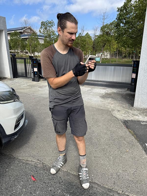 外國游客神態(tài)焦急 經(jīng)了解,該游客來自法國,計劃騎行至客車站,乘坐客車前往福州搭乘渡輪前往臺灣地區(qū)。由于對當?shù)芈肪€不熟悉,誤騎行至高速公路收費站入口。更令他擔憂的是,他的中國簽證將在3天后到期,時間緊迫。 溝通過程中,法國游客情緒一度變得十分焦急,甚至考慮冒險搭乘路邊的貨車前往福州。執(zhí)法隊員見狀,首先耐心安撫游客情緒,用手勢和簡單的英語詞匯表達理解和幫助的意愿,讓游客逐漸平靜下來。
