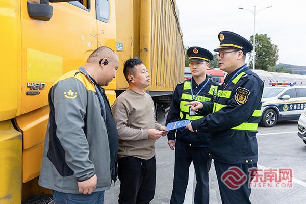 執(zhí)法人員聯(lián)合交警在服務(wù)區(qū)對貨車司機(jī)開展憲法宣傳。寧德高速公路行政執(zhí)法支隊(duì)供圖 作為京臺高速福建段的重要交通樞紐,古田收費(fèi)站和五華山服務(wù)區(qū)人流、車流密集,是開展普法宣傳的關(guān)鍵陣地?;顒忧埃箨?duì)精心謀劃部署,結(jié)合高速公路執(zhí)法工作實(shí)際,梳理憲法核心內(nèi)容、交通運(yùn)輸領(lǐng)域法律法規(guī)及群眾高頻咨詢問題,制作了圖文并茂的宣傳手冊、海報等資料,同時整合LED顯示屏、咨詢服務(wù)臺等宣傳資源,構(gòu)建“線上+線下”“固定+流動”的立體宣傳格局,確保宣傳工作精準(zhǔn)高效。