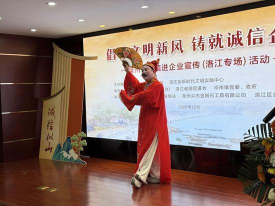 講古《黃奕聰文明誠信故事》。吳雅藝攝 12月9日,“倡導文明新風 鑄就誠信企業(yè)”泉州市誠信進企業(yè)宣傳(洛江專場)活動舉行?;顒又荚谏钊雽W習宣傳貫徹黨的二十屆四中全會精神和習近平總書記關于誠信建設的重要論述,弘揚誠信文化,提升企業(yè)及員工的文明素養(yǎng)和誠信意識,營造“知信、用信、守信”的良好營商環(huán)境。 活動主辦方強調(diào),要堅持以信立業(yè),筑牢企業(yè)發(fā)展根基。希望廣大企業(yè)自覺將誠信作為核心價值追求,貫穿于生產(chǎn)經(jīng)營各環(huán)節(jié)、全過程。要嚴守法律法規(guī),恪守契約精神,保障產(chǎn)品與服務品質(zhì)。要切實保障員工合法權益,依法誠信納稅,積極參與社會公益,主動履行社會責任,塑造負責任、有擔當?shù)牧己闷髽I(yè)形象;要注重以文化人,培育企業(yè)誠信文化。希望企業(yè)將誠信建設融入企業(yè)文化,通過宣傳教育、典型選樹、活動浸潤等方式,使誠信理念深入人心。要充分發(fā)揮企業(yè)黨組織和黨員先鋒模范作用,在企業(yè)內(nèi)部營造“人人講誠信、事事守信用”的濃厚氛圍,使誠信成為員工的自覺行動和企業(yè)的文化基因;要勇于示范引領,共建良好信用生態(tài)。希望優(yōu)秀企業(yè)爭當行業(yè)誠信表率,主動作出公開承諾,自覺接受社會監(jiān)督。要加強行業(yè)自律,帶動合作伙伴共建誠信共同體,形成“守信光榮、失信可恥”的行業(yè)風尚。 活動現(xiàn)場,企業(yè)代表宣讀《洛江區(qū)文明誠信企業(yè)倡議書》,號召廣大企業(yè)自覺踐行誠信經(jīng)營理念,擔當社會責任。隨后,一系列富有泉州地方特色、緊扣誠信主題的文藝節(jié)目與宣講精彩上演——泉州高甲戲傳承人王培煥帶來的《痟公子講誠信》,以傳統(tǒng)戲曲形式生動演繹誠信故事;宣講員楊熠以《誠信之光照亮文明洛江》為題,深刻闡釋了誠信建設的時代價值與現(xiàn)實意義;洛江區(qū)實驗小學學生為現(xiàn)場觀眾帶來了精彩的木偶劇表演,通過蔡襄建洛陽橋的歷史故事傳遞堅守承諾的寶貴品質(zhì);福建省非遺傳承人黃德模以親切的鄉(xiāng)音講述了本土企業(yè)家黃奕聰?shù)恼\信佳話;最后,《文明之花》舞蹈表演為活動畫上了優(yōu)美句點。 主辦方相關負責同志表示:“活動以群眾喜聞樂見的方式傳播誠信文化,將誠信理念春風化雨般融入觀眾心田,有效強化了企業(yè)的誠信主體意識和員工的職業(yè)道德觀念,進一步推動‘知信、用信、守信’在全社會蔚然成風。” 活動由中共泉州市委文明辦、洛江區(qū)新時代文明實踐中心主辦,洛江區(qū)委宣傳部(文明辦)、洛江區(qū)誠信促進會、河市鎮(zhèn)黨委、政府承辦,泉州眾志金剛石工具有限公司協(xié)辦。 |
