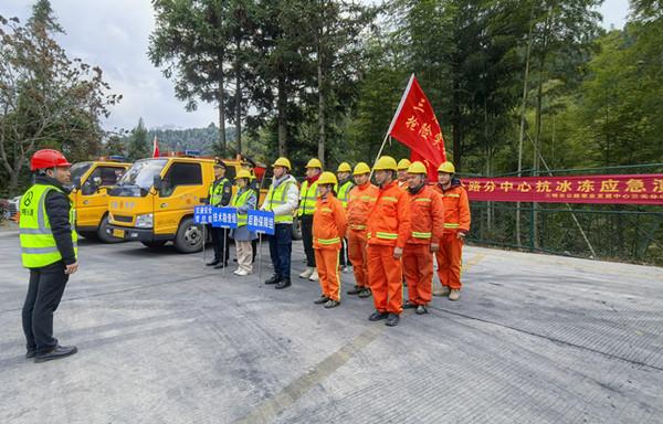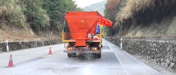 撒融雪劑。 東南網(wǎng)1月7日訊(通訊員 郭鈞 李宇杰 季蓉 文/圖)近日,氣溫驟降,1月6日下午,三元公路分中心組織機(jī)材、工程、路產(chǎn)安全、工會(huì)等部門,在G534線中村石馬岬隧道易結(jié)冰路段,以“實(shí)戰(zhàn)為導(dǎo)向”開展抗冰凍應(yīng)急演練,同步完成易結(jié)冰災(zāi)害點(diǎn)專項(xiàng)檢查,用專業(yè)部署與快速響應(yīng)筑牢冬季公路安全暢通防線。 此次演練模擬石馬岬隧道路段受強(qiáng)降溫影響,路面出現(xiàn)結(jié)冰險(xiǎn)情,影響過往車輛通行安全。上午9時(shí)許,中村公路站巡查人員在日常巡檢中發(fā)現(xiàn)路面結(jié)冰跡象后,立即向分中心報(bào)告現(xiàn)場(chǎng)情況,包括結(jié)冰范圍、路面狀況及交通影響等關(guān)鍵信息。分中心接到報(bào)告后迅速研判,當(dāng)即啟動(dòng)冰凍災(zāi)害應(yīng)急處置預(yù)案,下達(dá)搶險(xiǎn)指令。 接到指令,搶險(xiǎn)隊(duì)伍迅速集結(jié),融雪撒布機(jī)、養(yǎng)護(hù)車輛等立即趕赴現(xiàn)場(chǎng),各作業(yè)小組分工協(xié)作、高效聯(lián)動(dòng)。公路站職工熟練地布設(shè)錐標(biāo)、立好警示標(biāo)識(shí)、按規(guī)范劃定安全作業(yè)區(qū)域,路產(chǎn)人員引導(dǎo)過往車輛減速慢行。工程技術(shù)人員認(rèn)真勘察“結(jié)冰”路段情況,指導(dǎo)除冰作業(yè)組采用“機(jī)械撒布+人工清掃”相結(jié)合的方式,先通過撒布機(jī)均勻撒布融雪劑,加速冰層消融,再行清掃。整個(gè)演練過程中各部門互相有序配合,從險(xiǎn)情上報(bào)、預(yù)案啟動(dòng)到現(xiàn)場(chǎng)處置、道路恢復(fù),全程銜接順暢,充分展現(xiàn)了搶險(xiǎn)隊(duì)伍在極端天氣下的快速響應(yīng)能力與協(xié)同作戰(zhàn)水平。
