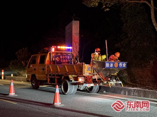 在省道215線德化易結(jié)冰路段,德化分中心工作人員正在撒融雪劑。泉州市公路中心 供圖 東南網(wǎng)1月8日訊(通訊員 張卉 王開(kāi)斌 王佳城 林秋燕)從1月6日開(kāi)始,泉州市多地陸續(xù)發(fā)布霜凍預(yù)警,氣象部門預(yù)測(cè)7日至9日,全市大部分鄉(xiāng)鎮(zhèn)最低氣溫將降至10℃以下,其中德化、安溪和永春部分高海拔鄉(xiāng)鎮(zhèn)最低氣溫更是將跌破0℃,路面極易出現(xiàn)結(jié)冰現(xiàn)象。 寒潮突襲之下,泉州市公路中心迅速行動(dòng),啟動(dòng)低溫天氣應(yīng)急預(yù)案,目前已備足融雪劑43噸、裝載機(jī)39臺(tái)等物資和設(shè)備,應(yīng)急搶險(xiǎn)隊(duì)伍嚴(yán)陣以待,24小時(shí)值班值守,義無(wú)反顧沖鋒在前,多措并舉筑牢公路安全防線,全力確保民眾出行平安。 當(dāng)夜幕降臨,氣溫驟降,千家萬(wàn)戶沉浸在溫暖之中時(shí),公路人頂著刺骨寒風(fēng)奔赴一線,一場(chǎng)與低溫冰凍的“戰(zhàn)斗”正式打響。 7日晚,在省道215線德化路段,寒風(fēng)穿透防寒服,作業(yè)人員的臉頰被凍得通紅,但他們絲毫沒(méi)有懈怠。“出發(fā)!”隨著一聲令下,撒布機(jī)緩緩啟動(dòng),橙黃色的車燈劃破夜空,融雪劑順著設(shè)備均勻?yàn)⒙洌诼访嫘纬梢粚影咨姆雷o(hù)膜,作業(yè)人員還下車用鐵鍬輔助鋪撒,確保融雪劑覆蓋無(wú)死角,每一個(gè)動(dòng)作都嫻熟而堅(jiān)定。同時(shí),分中心派出巡邏車輛,針對(duì)轄區(qū)國(guó)省道易結(jié)冰路段實(shí)時(shí)監(jiān)測(cè)路面溫度變化,最大限度降低路面結(jié)冰風(fēng)險(xiǎn)。 永春分中心組織人員在國(guó)道356線白珩路段開(kāi)展融冰作業(yè),作業(yè)人員頂著凜冽寒風(fēng),采用“人工補(bǔ)撒+車輛保障”的方式,將融雪劑均勻撒布在路面;在易結(jié)冰路段設(shè)置安全警示標(biāo)志牌,通過(guò)公路可變情報(bào)板發(fā)布路況信息;進(jìn)一步加強(qiáng)對(duì)重點(diǎn)路段、關(guān)鍵節(jié)點(diǎn)的巡查力度,做到隱患早發(fā)現(xiàn)、早處置,切實(shí)筑牢防寒防凍安全“防護(hù)網(wǎng)”。 安溪分中心在霜凍預(yù)警前即整理好融雪劑、應(yīng)急照明燈等物資,為后續(xù)處置備足“彈藥”;同時(shí),組織多名工作人員開(kāi)展拉網(wǎng)式巡查,重點(diǎn)檢查背陰路段、橋梁涵洞、山間坡道等易結(jié)冰重點(diǎn)區(qū)域,確保每一處隱患都能早發(fā)現(xiàn)、早處置。 |