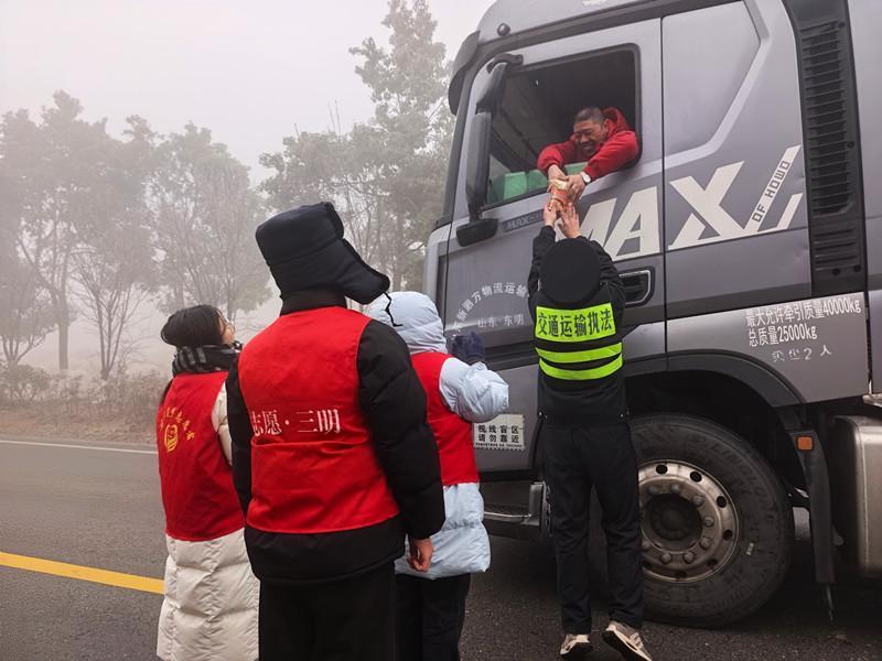 冰封歸途有暖意 三明建寧公路志愿者為滯留司乘送溫暖