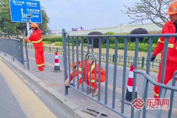 養(yǎng)護(hù)人員修復(fù)公路設(shè)施(廈門公路中心供圖) 老舊設(shè)施煥新 筑牢交通安全“防線” 針對部分使用年限較長、外觀老舊破損且常規(guī)清潔無法消除臟污的設(shè)施,直屬公路部門同步推進(jìn)修復(fù)與更換工作。 此次行動累計刷新養(yǎng)護(hù)105個路口警示端頭和5個交通標(biāo)志牌,同時推進(jìn)道口柱、警示柱、防撞桶及隔離護(hù)欄的更新與升級。 工作人員通過粘貼反光膜、刷新警示漆等措施,增強(qiáng)了各類設(shè)施夜間的反光效果和可視性。這些舉措既讓道路設(shè)施面貌煥然一新,又筑牢了夜間與復(fù)雜路況下的交通安全防線。 建立長效機(jī)制 保障路域環(huán)境持續(xù)優(yōu)化 經(jīng)過此次集中整治,轄區(qū)內(nèi)道路設(shè)施的整潔度、完好率與安全保障能力均得到提升,城市通行環(huán)境有效改善。市民駕車或步行時,都能直觀感受到路域環(huán)境的清爽變化與細(xì)節(jié)優(yōu)化。 接下來,直屬公路部門將持續(xù)強(qiáng)化道路設(shè)施常態(tài)化管護(hù),健全長效巡查養(yǎng)護(hù)機(jī)制。他們將通過提高日常保潔頻次、加大動態(tài)清洗力度,實(shí)現(xiàn)常態(tài)化巡查、精細(xì)化養(yǎng)護(hù)、快速化整改,全力維護(hù)良好路容路貌。 |
