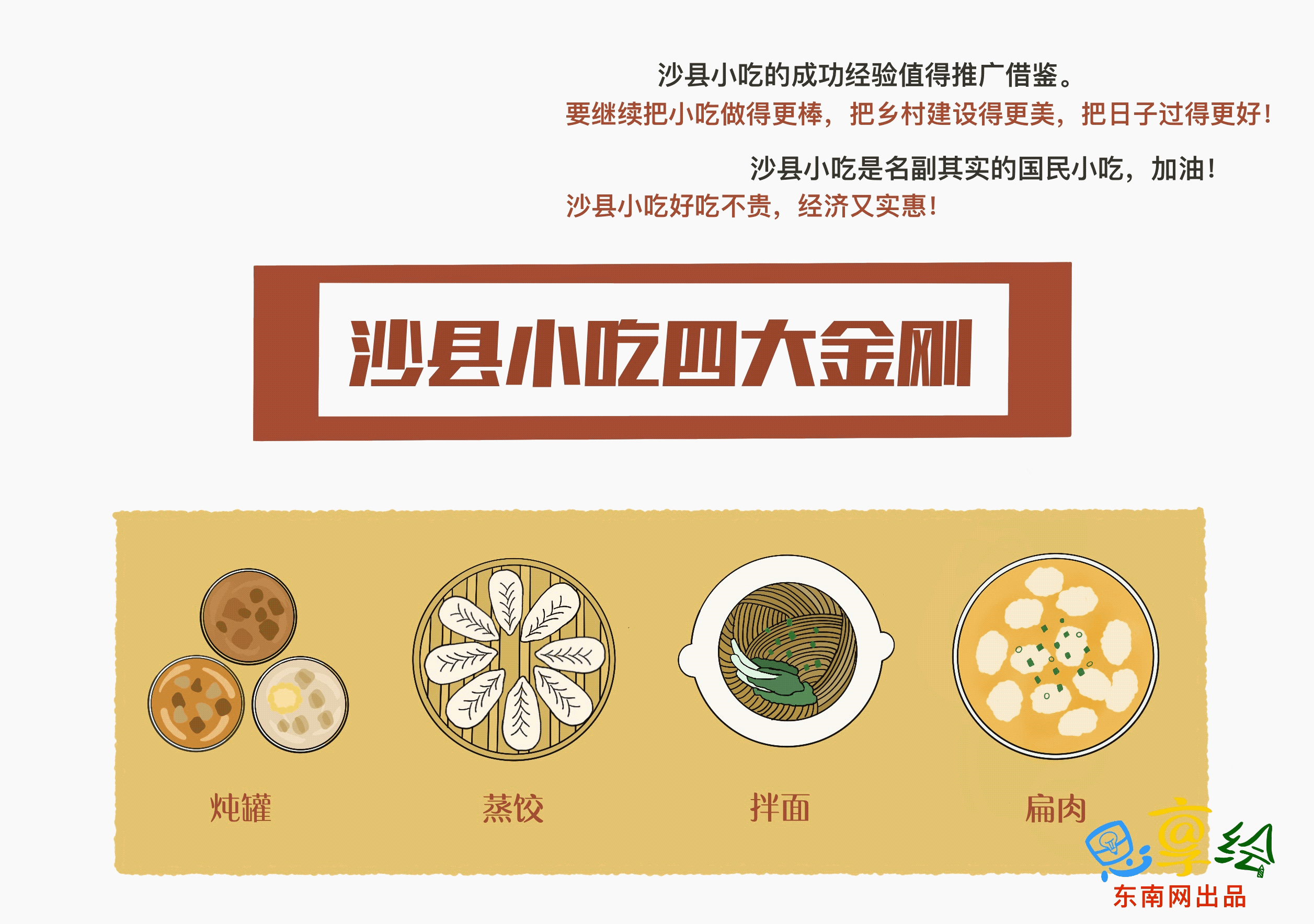 2021-03-31 21:44:38 來(lái)源:東南網(wǎng) 責(zé)任編輯:孫勁貞 作者:孔德淇新聞背景:3月23日下午,習(xí)近平總書(shū)記來(lái)到三明市沙縣區(qū)夏茂鎮(zhèn)俞邦村。習(xí)近平指出,沙縣人走南闖北,把沙縣小吃打造成了富民特色產(chǎn)業(yè)。鄉(xiāng)村要振興,因地制宜選擇富民產(chǎn)業(yè)是關(guān)鍵。要抓住機(jī)遇、開(kāi)闊眼界,適應(yīng)市場(chǎng)需求,繼續(xù)探索創(chuàng)新,在創(chuàng)造美好生活新征程上再領(lǐng)風(fēng)騷。 漫畫(huà):孫青春 短評(píng):沙縣小吃,大有作為,其成功之處正在于立足本地、準(zhǔn)確定位、發(fā)展特色。鄉(xiāng)村要振興,也要像做大“沙縣小吃”一樣,因地制宜選擇特色產(chǎn)業(yè),闖出致富路子。就在習(xí)近平總書(shū)記來(lái)到沙縣的前一天,《中共中央國(guó)務(wù)院關(guān)于實(shí)現(xiàn)鞏固拓展脫貧攻堅(jiān)成果同鄉(xiāng)村振興有效銜接的意見(jiàn)》全文公布。意見(jiàn)把“支持脫貧地區(qū)鄉(xiāng)村特色產(chǎn)業(yè)發(fā)展壯大”擺在突出位置加以強(qiáng)調(diào)。在鄉(xiāng)村振興的壯美畫(huà)卷上,我們固然需要勤勤懇懇、埋頭趕路,但也要開(kāi)闊眼界、抬頭看路,積極適應(yīng)市場(chǎng)需求,探索挖掘更多的“沙縣小吃”,以地方特色破解“三農(nóng)”問(wèn)題,用小美食寫(xiě)好大文章,為鄉(xiāng)村振興打造更高水平樣板,在創(chuàng)造美好生活新征程上引領(lǐng)風(fēng)騷。 農(nóng)副產(chǎn)品深受外地人民熱捧,逐漸“走出去”,也側(cè)面反映出依托地理優(yōu)勢(shì)、文化鄉(xiāng)愁,昔日的鄉(xiāng)村美食也能作為抓手,變身鄉(xiāng)村振興的“孵化器”。但也該看到,美食既是飲食,也是人文和歷史;食物不僅能“果腹”,還蘊(yùn)含世間百態(tài)、故事文化。大江南北、山河湖海,美食和口味應(yīng)有盡有,在茫茫“紅?!崩铮吧晨h小吃”要不斷創(chuàng)新、走得更遠(yuǎn),還要深耕IP背后的中國(guó)傳統(tǒng)、文化與人情,在“吃”背后的人與事上面做文章——經(jīng)由小吃這個(gè)窗口,讓人看到妙趣橫生的市井氣,了解人和食物的關(guān)系、人和鄉(xiāng)土的關(guān)系。(孔德淇) |
