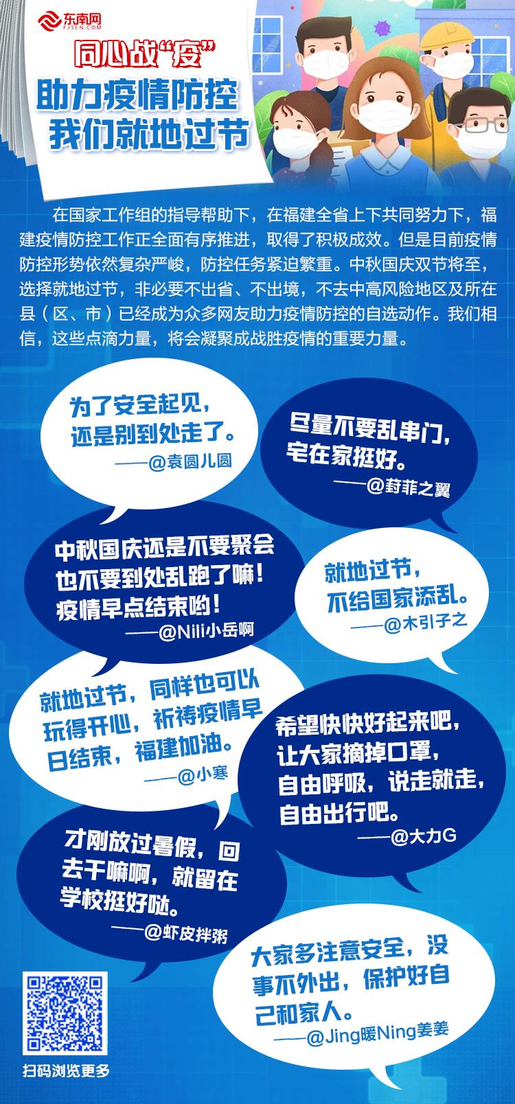 2021-09-18 17:17:18 來源:東南網(wǎng) 責任編輯:孫勁貞 作者:林瑤中秋、國慶假期將至。針對當前疫情形勢,福建官方倡議民眾就地過節(jié),減少出行,共同筑起聯(lián)防聯(lián)控、群防群控的堅固防線。 本次疫情發(fā)生以來,福建正爭分奪秒開展核酸檢測、流調溯源、隔離管控、醫(yī)療救治等工作。助力福建,抗疫有我!就公民個體而言,就地過節(jié)的確使部分人失去了與家人團聚的機會,但從疫情防控大局來看,我們的每分理解與積極配合,都是在以力所能及的方式助力防控。數(shù)字化時代,即便在不同城市,我們依舊能通過互聯(lián)網(wǎng)與家人舉杯共飲、“隔空”賞月,用互發(fā)信息、短視頻、電子賀卡等方式傳遞佳節(jié)祝福。隔離的是疫情,不變的是真情,“線上團圓”一樣有滋有味。 學校、企事業(yè)單位是疫情防控的重要主體,也是推進就地過節(jié)的最后一公里。自9月10日以來,本輪疫情新增本土確診病例場所聚集性感染明顯,這就要求各級地方政府和相關單位做好摸底排查、健康管理、服務保障等工作。防疫是一項系統(tǒng)工程,需下足“繡花”功夫,把每一個細節(jié)都考慮清楚,將每一個步驟都落實到位。此外,學校與相關單位可以采取發(fā)放月餅、節(jié)日補貼,組織線上“博餅”、猜謎等活動增添節(jié)日氣氛。多一份暖心關懷,多一些人性化舉措,讓異地過節(jié)者感受到第二家鄉(xiāng)的溫馨。 就地過節(jié)期間,省內低風險地區(qū)在符合疫情防控的要求下,為群眾提供文旅服務時,需強化景區(qū)、公共文化服務場所的管控,嚴格落實“限量、預約、錯峰”要求,科學動態(tài)調整防控策略和措施;電影院、健身館、KTV等室內營業(yè)場所需做好衛(wèi)生和環(huán)境消殺。中高風險地區(qū)文旅服務場所應根據(jù)當?shù)匾咔榉揽刂笓]部的統(tǒng)一要求暫停對外開放。 疫情防控是一場全民戰(zhàn)爭,需要每個人及各地各部門的多方配合、通力協(xié)作,唯有齊心協(xié)力才能筑牢安全防線、贏得最終勝利,使城市恢復往日的生機。(林瑤) |
