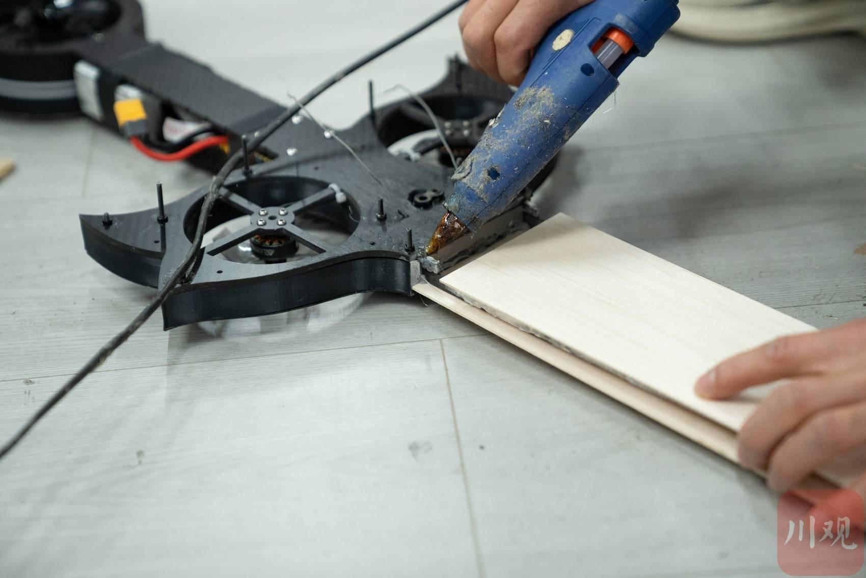 范十三團隊組裝劍形飛行器。圖片來源:四川在線
