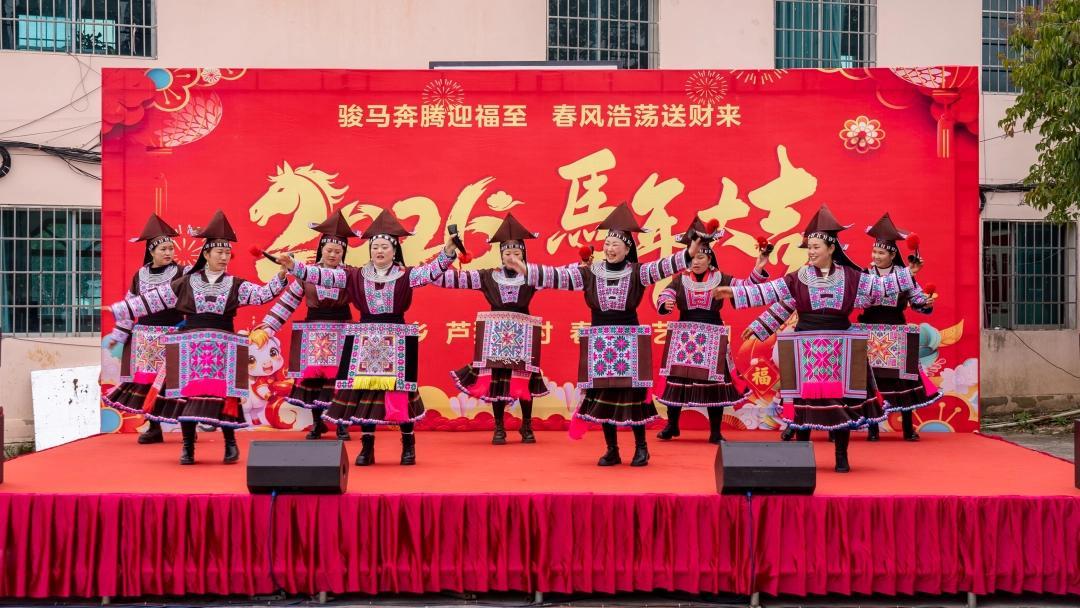 連日來(lái),貴安新區(qū)湖潮鄉(xiāng)2026年“四季村晚”暨春節(jié)文藝匯演在該鄉(xiāng)多個(gè)村寨輪番登場(chǎng),并延伸至貴安高鐵站等公共空間。此次活動(dòng)將持續(xù)至農(nóng)歷正月十五(3月3日)。(2月24日 貴州日?qǐng)?bào))