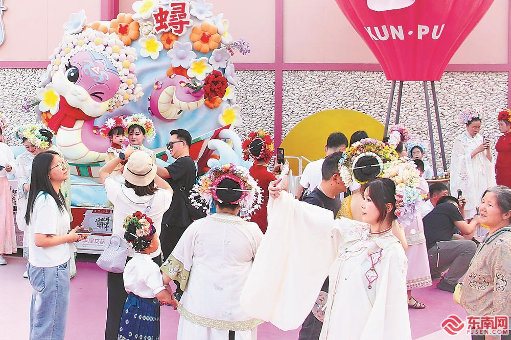 “五一”當天,蟳埔迎來眾多游客打卡拍照。頭戴簪花的游客與村民穿梭在街頭巷尾,整個村莊宛如“移動的花?!?。福建日報記者 莊釗瀅 攝 東南網(wǎng)5月5日訊(福建日報記者 莊釗瀅 通訊員 陳賡嘉) “五一”假期,泉州市豐澤區(qū)東海街道蟳埔村熱度不減,目之所及皆是“移動的花?!薄?/p> “今年,蟳埔村推出‘十大提升工程’,力促形成簪花、旅拍、問海、巷遇、聽音、看戲、品鮮、樂購‘八大體驗’?!必S澤區(qū)蟳埔民俗文化村保護提升指揮部負責人告訴記者,蟳埔村剛剛迎來新一輪蛻變,游客體驗區(qū)域得到進一步拓寬,面積達300畝左右。 此次新開幕的“簪花里”文旅市集,集簪花攝影、文創(chuàng)集市、美食餐飲、智慧停車等業(yè)態(tài)于一體。“新亮相的‘澤禮蟳物’文創(chuàng)店中,有500多款‘簪花+’文創(chuàng)產(chǎn)品。小到冰箱貼,大到擺件、衣物等,還鏈接了永春香道、德化陶瓷、安溪鐵觀音等各縣(市、區(qū))特色產(chǎn)品?!敝笓]部負責人介紹,近期豐澤區(qū)與多家企業(yè)簽約“蟳埔LOGO品牌聯(lián)名”,涉及文創(chuàng)、茶葉、鮮啤、服飾、零食等多個品類,蟳埔文化將以更多元、更新穎的形式走進大眾視野。 手撫蚵殼厝,在巷中穿梭,掠過各色簪花,闖入各式鏡頭。記者和北京游客劉女士一同“誤打誤撞”進一處“秘境花園”。白色水塔下,一處傳統(tǒng)的石頭厝“生長”出現(xiàn)代感的拱頂,周邊花團錦簇。劉女士喚來同伴:“這里好看,咱們在這多拍幾張照!” “思源水塔是以前蟳埔村的重要供水設(shè)施,位于村子的核心位置,四通八達的小巷多數(shù)匯聚到這里?!遍偃簟はy花咖啡廳負責人告訴記者,這里是新打造的“十大提升工程”之一,是全國首個簪花主題咖啡民宿群落,空間集咖啡廳、民宿、茶館、窯烤面包于一體。 一旁的清源茶樓上,樂器聲叮咚響起,膾炙人口的旋律傳來,引得不少游客循聲而來?!拔逡弧碑斕?,盡管是開店首日,店鋪宣傳還未鋪開,但僅一盞茶的工夫,記者就看到游客紛至沓來,或四處拍照,或閑適坐下。 “過去,蟳埔村的文旅產(chǎn)業(yè)以簪花和旅拍兩大業(yè)態(tài)為主,較為單一?!敝笓]部負責人表示,將以“十大提升工程”為抓手,升級完善蟳埔村的硬件設(shè)施,持續(xù)推動業(yè)態(tài)豐富和游客體驗感提升。“讓游客為美景停下來,再為美食坐下來,最后為美居住下來,把游客留在蟳埔。” 沿著豐海路,新落地的“簪花里”文旅市集、非遺小劇場、騰訊音樂小屋、蟳花樂游·游艇碼頭等項目依次排布。從午后到日落,記者看到其間攢動的花海始終與海上的粼粼波光相映成趣,游客們意興盎然、流連忘返。據(jù)統(tǒng)計,截至4日,“五一”假期蟳埔村已接待游客超31.5萬人次,其中外地游客占比約60%。 |