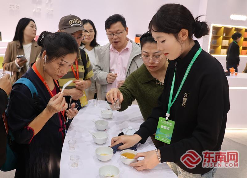 嘉賓參觀展館 東南網(wǎng)記者 肖練冰 攝 據(jù)悉,展會期間,“茶和天下 緣聚武夷”中國茶非遺文化交流、“茗韻通絲路 茶香匯武夷”武夷山茶葉產(chǎn)銷對接會、“武夷山‘三茶’統(tǒng)籌創(chuàng)新研究院”揭牌等系列活動將持續(xù)開展,全面夯實產(chǎn)業(yè)發(fā)展基礎。 兩岸深度相融 共敘二十年茶緣