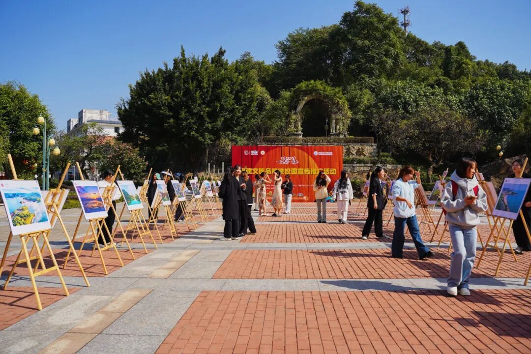茶藝表演 同期舉辦的福建文旅攝影圖片展在學(xué)院余寶笙廣場(chǎng)展出,精選60幅展現(xiàn)福建自然風(fēng)光、人文景觀與民俗風(fēng)情的優(yōu)秀攝影作品,一幅幅光影佳作如同流動(dòng)的畫(huà)卷,讓師生們?cè)诜酱缰g領(lǐng)略福建的詩(shī)意之美。展覽現(xiàn)場(chǎng)還設(shè)置了文旅企業(yè)宣傳推廣展臺(tái),通過(guò)發(fā)放宣傳資料、掃碼送禮、互動(dòng)抽獎(jiǎng)、現(xiàn)場(chǎng)咨詢(xún)等形式,與師生們面對(duì)面交流,師生們積極參與,熱情高漲。