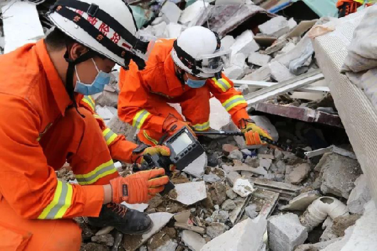 科學(xué)施救——?jiǎng)?chuàng)造一個(gè)又一個(gè)生命奇跡 事故現(xiàn)場(chǎng)5層村民自建房已完全倒塌,各樓層基本上呈疊壓式坍塌,樓層中間因隔墻泡沫磚及部分家具支撐,存在較多三角生存空間。施救速度越快,被困人員生還的幾率越大。