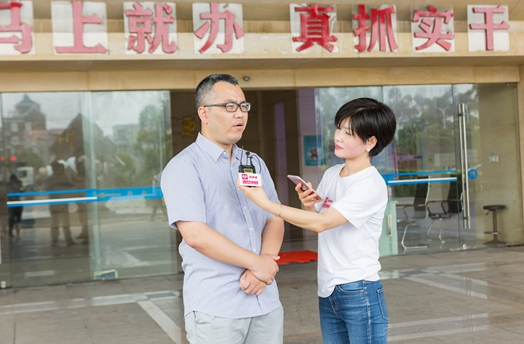 ▲5月8日,拼多多“百億補(bǔ)貼”官方主播阿歡在中國(福建)自由貿(mào)易試驗(yàn)區(qū)門口,向直播間的觀眾問好。張冰 攝