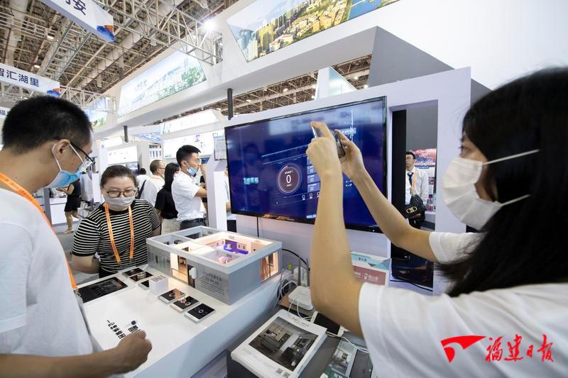 參觀客商正在體驗(yàn)智能家居設(shè)備。(福建日?qǐng)?bào)記者 王毅 攝影報(bào)道)