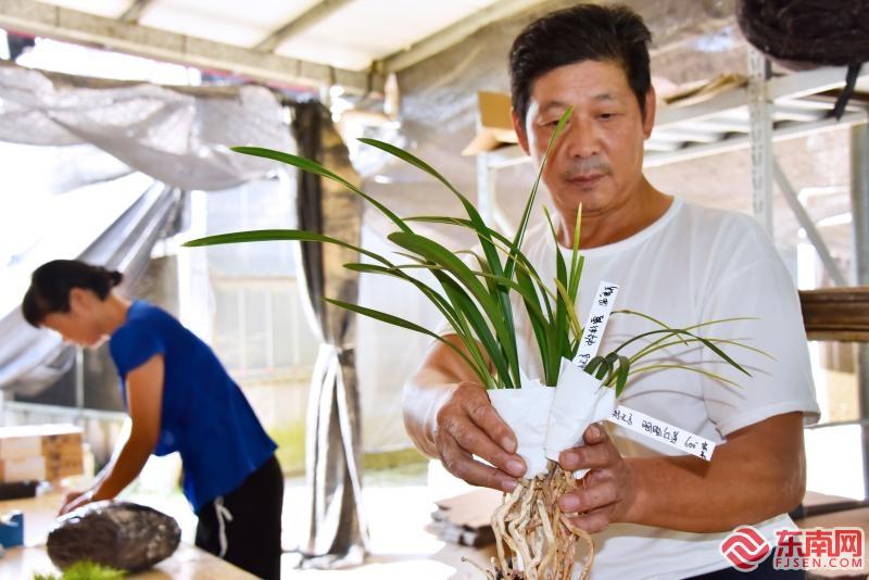 東方村芳香蘭蒲的線上訂單量絡(luò)繹不絕,工作人員正在抓緊時(shí)間打包蘭花,準(zhǔn)備發(fā)出。東南網(wǎng)記者 簡(jiǎn)慧玲 攝