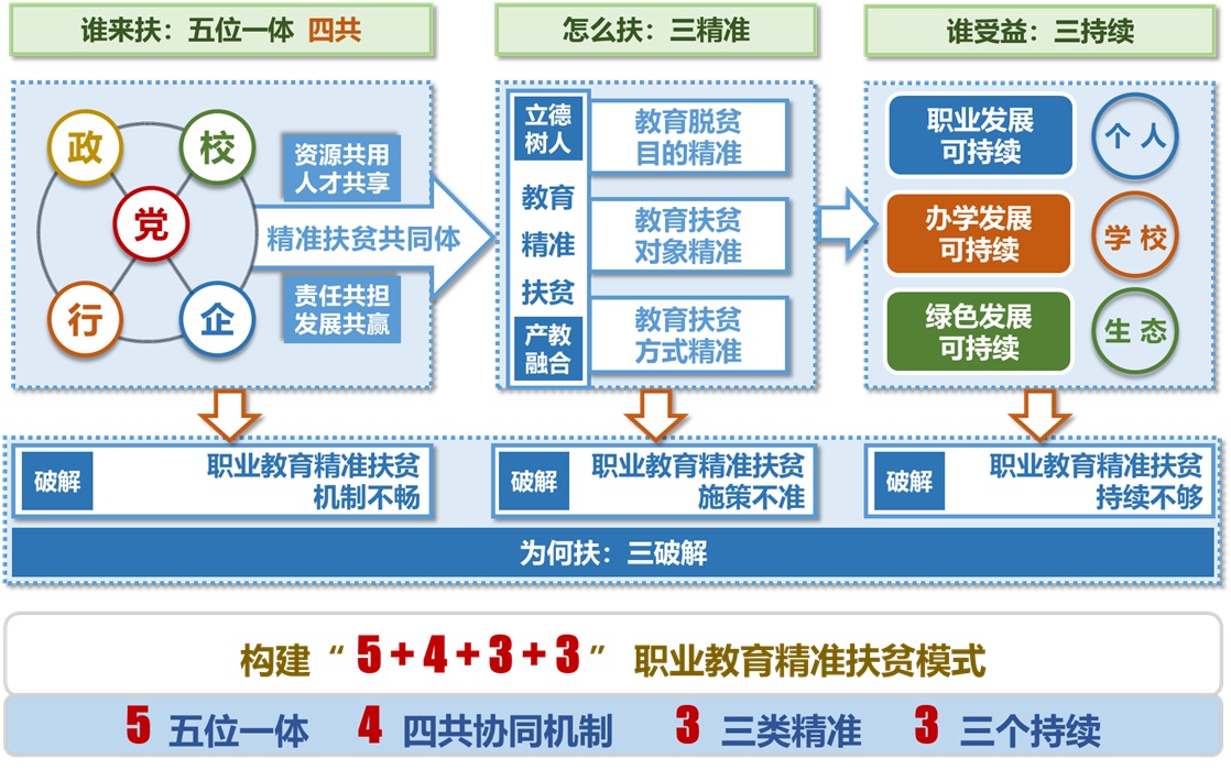 “5+4+3+3”職業(yè)教育精準(zhǔn)扶貧模式路線圖。(來源:福建水利電力職業(yè)技術(shù)學(xué)院)