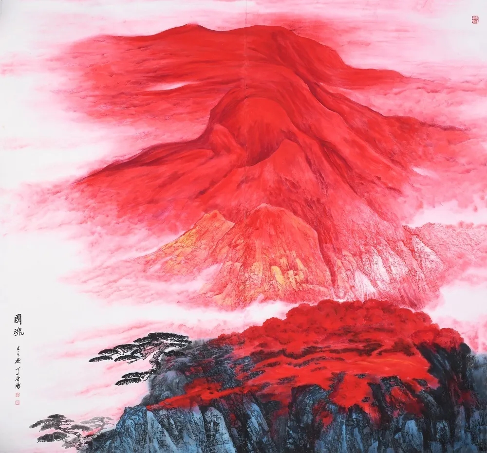 《國魂》192x180cm 雖然畫中山水靈感源自真實山水,但又不同于真實景致,與之相比則有了更多浪漫的詩意。畫中的一山一水皆是畫者內(nèi)在情感的自然流露,大膽的用色、別致的構圖以及超自然的造型,讓畫面彰顯出旺盛的生命力和特有的秩序美。 據(jù)介紹,丁香陽,1950年2月27日生,山東省榮成市人,號瀾鳴軒主人,國家一級美術師、山東省國畫院常務理事兼副秘書長、威海市渤海書畫院院長。2018年考入由現(xiàn)代水墨之父劉國松領銜擔綱的首屆“當代水墨藝術研究院”高峰班學習。曾在《山東藝術》《中國美術雜志》和《中國書畫雜志》等國家核心刊物上發(fā)表美術理論文章多篇。 2018年,分別在榮成、威海、濟南等地舉辦個人畫展。2019年,與“現(xiàn)代水墨之父”劉國松教授弟子在上海舉辦聯(lián)展。2019年12月21日至24日,在北京山水美術館舉辦個展。2019年9月和2020年9月,先后兩次在翰墨(青州)中國書畫年會舉辦個人畫展。