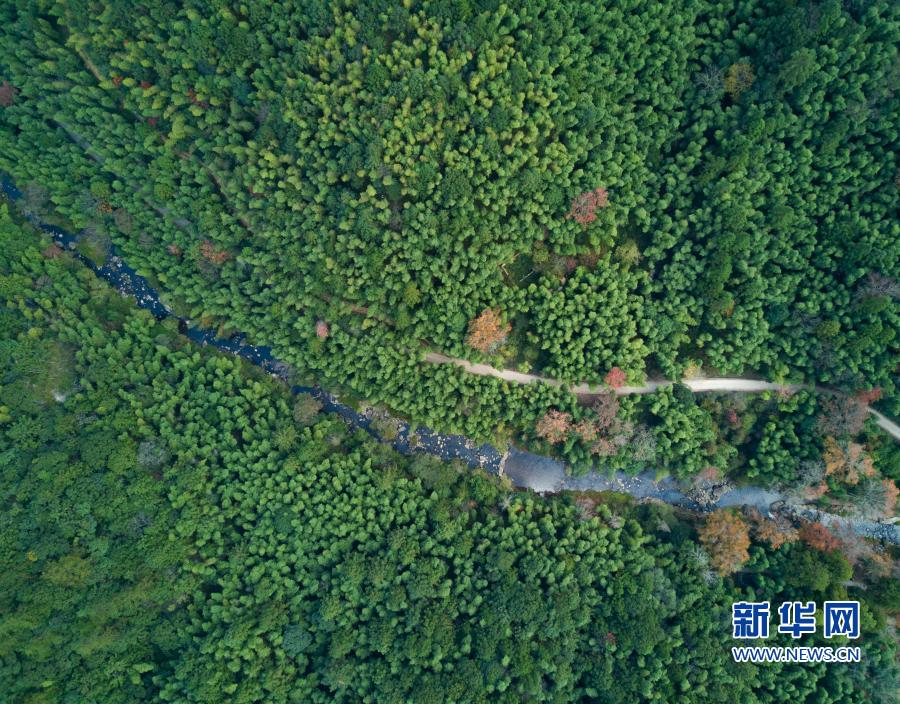 這是11月19日拍攝的福建省三明市將樂縣國家級自然保護區(qū)水杉大道(無人機照片)。 龍棲山國家級自然保護區(qū)位于福建省三明市將樂縣。近年來,該縣利用當?shù)氐锰飒毢竦纳鷳B(tài)條件,發(fā)展全域森林康養(yǎng)產(chǎn)業(yè),并于今年6月入選首批國家森林康養(yǎng)基地名單。新華社記者 宋為偉 攝