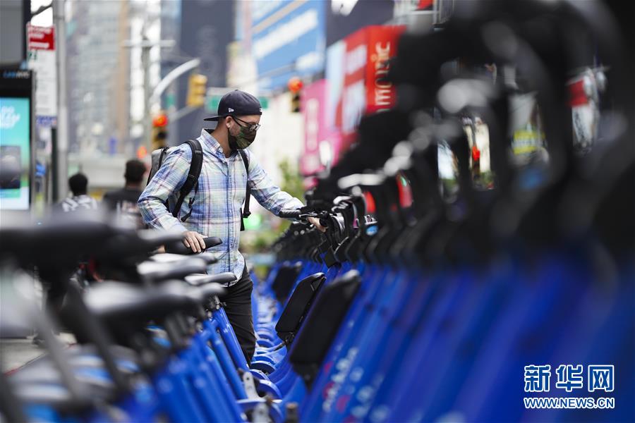 8月19日,在美國紐約,一名男子租用公共自行車。 新華社記者 王迎 攝