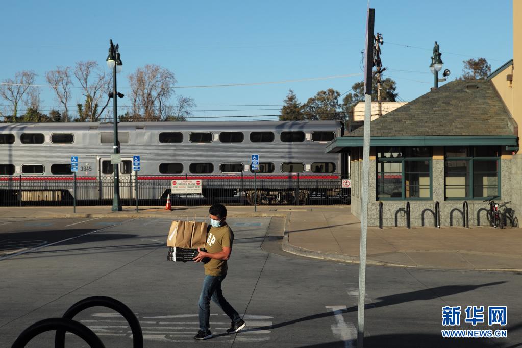 4月6日,一名行人拿著外賣走在美國加利福尼亞州北部小城圣馬特奧的火車站前。 美國加州州長紐瑟姆6日在舊金山舉行的新聞發(fā)布會上宣布,如新冠疫苗接種進展順利,住院人數(shù)持續(xù)下降,加州計劃于6月15日解除防疫等級限制的相關規(guī)定,全面恢復開放經(jīng)濟活動。 新華社記者 吳曉凌 攝 |