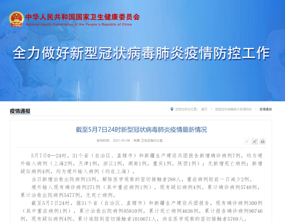 國家衛(wèi)健委:7日新增確診病例7例 均為境外輸入
