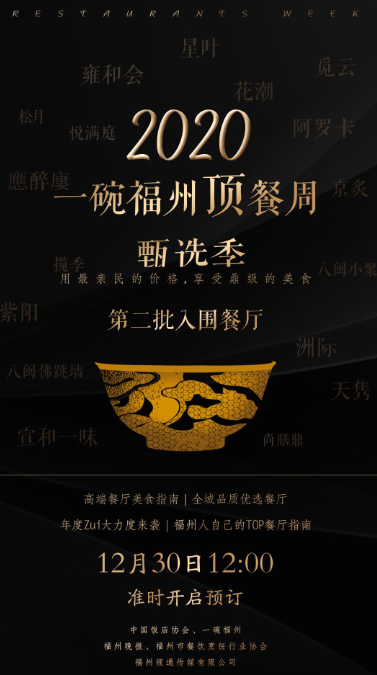 由中國飯店協(xié)會(huì)指導(dǎo),福州晚報(bào)、福州市餐飲烹飪行業(yè)協(xié)會(huì)、一碗福州主辦的2020頂餐周甄選季正式啟動(dòng)后,于12月15日上午10:00開啟第一批頂餐周售賣,受到了市民們的熱烈響應(yīng)。經(jīng)過一周7天的用餐之后,你是否還意猶未盡?12月30日中午12:00,頂餐周第二批上線餐廳也即將開放席位預(yù)訂,20家TOP級(jí)別的餐飲品牌,為福州市民再次奉上一場(chǎng)饕餮盛宴。 評(píng)審團(tuán)嚴(yán)選菜單 今年的頂餐周甄選季特別請(qǐng)到中國飯店協(xié)會(huì)指導(dǎo),同時(shí)由一碗福州、福州晚報(bào)、福州市餐飲烹飪行業(yè)協(xié)會(huì)聯(lián)合發(fā)聲,多家權(quán)威機(jī)構(gòu)共同監(jiān)制,為食客的舌尖饕宴保駕護(hù)航。 12月25日,一碗福州評(píng)審團(tuán)限時(shí)集結(jié),對(duì)第二批上線的頂餐周套餐進(jìn)行嚴(yán)格的審核,針對(duì)菜單的菜品、價(jià)格、性價(jià)比等內(nèi)容提出相應(yīng)的意見與修改建議。從消費(fèi)者的角度出發(fā),為食客尋找一份精致且優(yōu)惠的菜單。 可通過掃描二維碼參加活動(dòng) 福利機(jī)制更優(yōu)惠 據(jù)一碗福州相關(guān)工作人員介紹,第二批活動(dòng)推出了更加優(yōu)惠的福利機(jī)制。一碗福州碗卡用戶購買頂餐周套餐,每單可享受立減40元的優(yōu)惠力度。更推出了“膨脹金”機(jī)制,1元購買可膨脹為30元的無門檻頂餐周優(yōu)惠券。優(yōu)惠還可疊加,給到顧客更優(yōu)惠的價(jià)格,享受城中的優(yōu)選美食。 此次頂餐周打破往日午晚餐使用限制的基礎(chǔ)上,更延長(zhǎng)了套餐的使用時(shí)間。絕大多數(shù)套餐消費(fèi)者在購買時(shí),可根據(jù)自身實(shí)際情況,與商家進(jìn)行預(yù)約,更加靈活選擇自己的用餐時(shí)間。 據(jù)了解,第二批商家套餐將于12月30日中午12:00上線,旨在用更加優(yōu)惠的福利價(jià)格,讓更多美食愛好者感受鼎級(jí)餐廳的魅力,引領(lǐng)城市美食行業(yè)新風(fēng)向。 附 頂餐周第二批上線餐廳全名單 松月·自慢料理 悅滿庭 雍和會(huì)海鮮姿造 井禮·山海宴 宣和一味 尙膳鼎順德鑊仔菜 八閩小聚 覓云云南菜 STARLEAF星葉南洋料理 ALOKA LOBSTER阿羅卡加龍料理 花潮日料藝食館 紫陽海鮮樓 攬季鍋物會(huì) 福州世茂洲際酒店·福邸中餐廳 福州財(cái)富品位酒店·應(yīng)醉廔 京炙烤肉料理 八閩·佛跳墻火鍋 福建外貿(mào)中心悅?cè)A酒店 埖絳法式日料花園餐廳 天雋餐廳 |