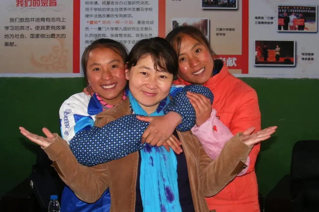 首屆研支團成員張秀麗再次回到海原縣時與當(dāng)年受助學(xué)生合影