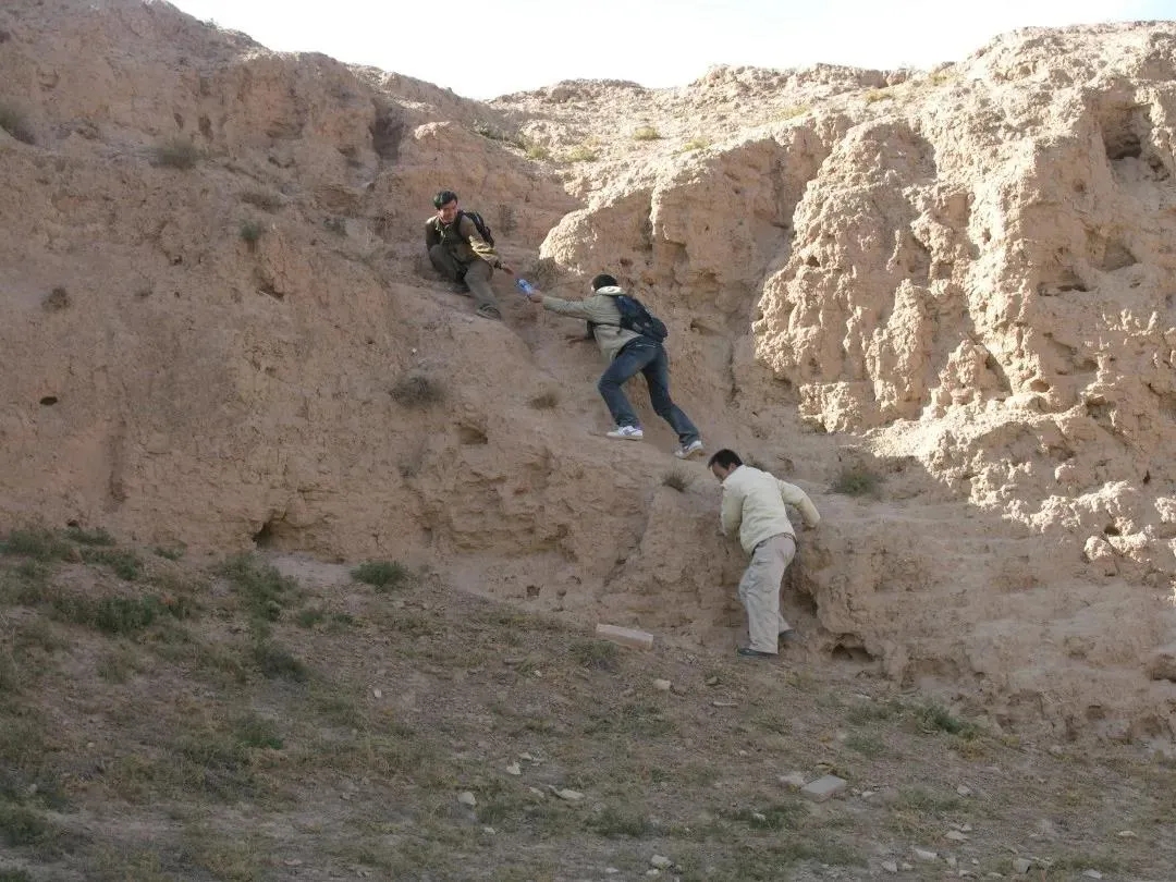 沒有公路,第七屆研支團成員葉楠與其他成員手腳并用跨越一道又一道山峁去學(xué)生家中家訪。