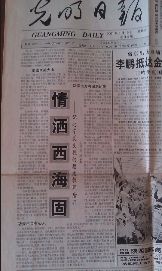 2001年5月19日唐昇老師支教事跡登上國(guó)家級(jí)大報(bào)《光明日?qǐng)?bào)》。 短期交流培訓(xùn)。2000年4月30日,涂雨書(shū)記和總務(wù)處黃維煌主任赴西吉中學(xué),與李強(qiáng)校長(zhǎng)等領(lǐng)導(dǎo)和教師交流互動(dòng),并慰問(wèn)正在該校支教的本校英語(yǔ)教師唐昇。2019年7月,學(xué)校選派正高級(jí)教師、省生物學(xué)科教學(xué)帶頭人黃福群等5名骨干教師到西吉中學(xué)開(kāi)展交流幫扶教研活動(dòng)。黃福群老師做《如何落實(shí)核心素養(yǎng)與學(xué)科教學(xué)的融合》專題講座,并就以課題引領(lǐng)新課堂,論文謀篇新角度,教育主張有智慧做了交流。2020年11月13日,正高級(jí)教師、莆田二中副校長(zhǎng)彭志強(qiáng)帶領(lǐng)福建省“彭志強(qiáng)名師工作室”成員及聘請(qǐng)數(shù)學(xué)科成員赴西吉中學(xué),幫助該校進(jìn)行師資培訓(xùn),4位省級(jí)名師就高中數(shù)學(xué)教學(xué)做了專題講座。彭副校長(zhǎng)做題為《例談對(duì)學(xué)生思維認(rèn)知能力(思維品質(zhì))培養(yǎng)的實(shí)踐與思考》的專題講座。彭副校長(zhǎng)已與西吉中學(xué)約好,若疫情許可,今年四月份將再去一趟。 |