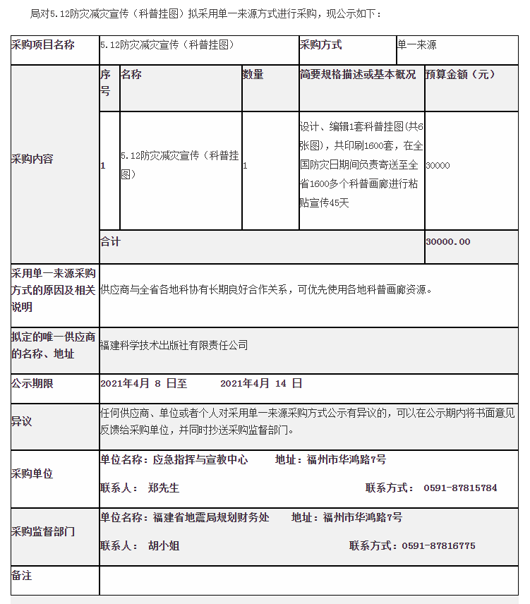應(yīng)急指揮與宣教中心5.12防災(zāi)減災(zāi)宣傳(科普掛圖)采購(gòu)公示