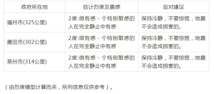 據(jù)地震臺網(wǎng):2021-04-18 22:11:00臺灣花蓮縣附近(自動)(121.51,23.94)發(fā)生5.2級地震,初估震中烈度約7度,距福建省所在地325公里,影響烈度約2度,微有感-個特別敏感的人在完全靜止中有感。 |