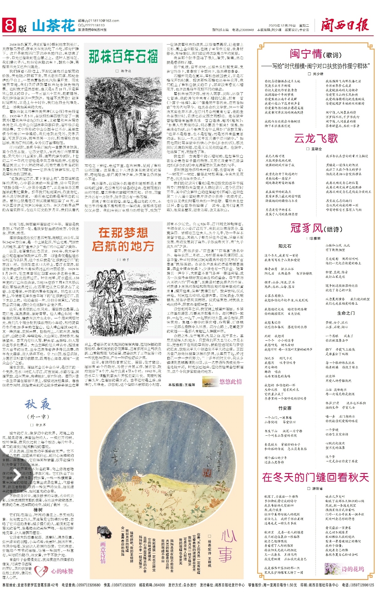 □ 劉少雄 你把真情播灑在這片土地 荒漠長(zhǎng)出片片新綠 你把大愛(ài)化作甘泉清清 滋潤(rùn)渴盼千年的夢(mèng)境 你愛(ài)塞北江南牛羊成群 我愛(ài)六盤山下花開的聲音 你愛(ài)黃河揚(yáng)水釀出葡萄美酒 我愛(ài)黃河岸流淌的閩南風(fēng)情 我隨白云歡歌在白楊樹頂 腳下車流滾滾前進(jìn) 我派雁陣飛向那東海之濱 告訴世界夢(mèng)已成真 我愛(ài)鼓浪嶼的大海潮音 你愛(ài)賀蘭山的長(zhǎng)風(fēng)和煦 我愛(ài)西海固崛起的座座新城 你愛(ài)校園里幸福的雙雙眼睛 閩寧情,人間最美的情 萬(wàn)里隔不斷,千里伴我行 閩寧情,人間最真的情 茶香醉塞北,共飲一家親 |