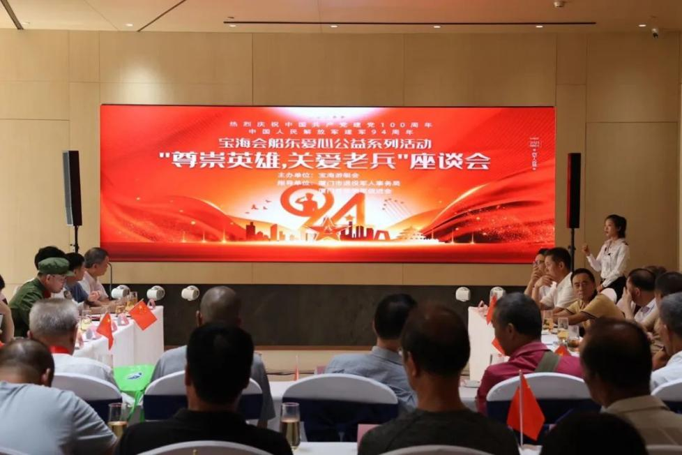 廈門市退役軍人服務中心供圖 7月26日下午,由廈門市退役軍人事務局、廈門市愛國擁軍促進會指導,廈門寶海游艇會主辦的“尊崇英雄,關(guān)愛老兵”座談會和慰問退役軍人活動拉開序幕。本次活動由廈門寶海游艇會船東捐贈慰問金和慰問物資46萬,慰問221位退役軍人,以此向退役老兵獻上一份尊崇和敬重。