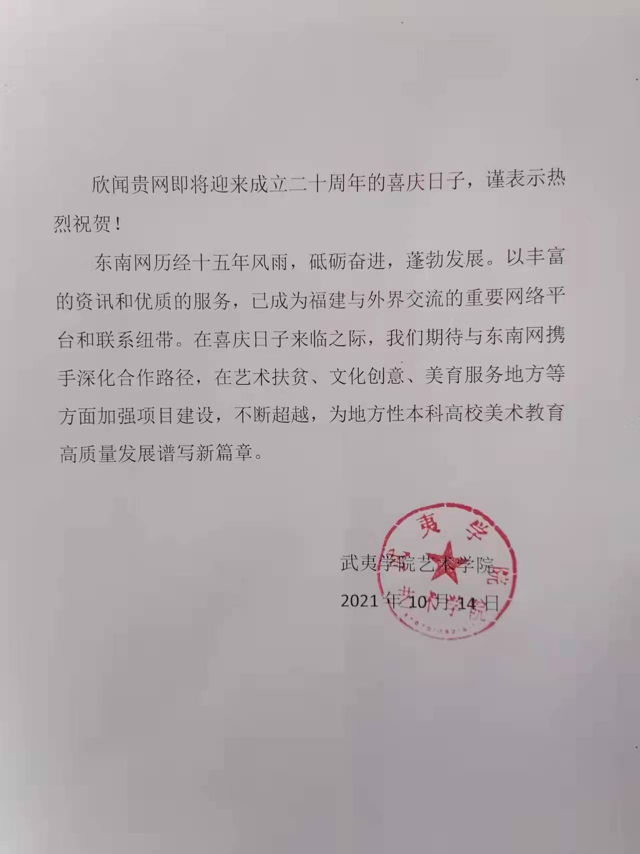 武夷學(xué)院藝術(shù)學(xué)院賀信